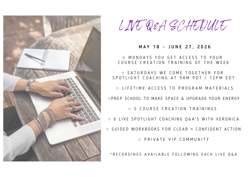Covering the essentials, from where to start, what exactly to offer, how to structure your beautiful course, what to say and how to say it when offering your program, you won't just be getting everything you need to create a powerful course you can confidently welcome students into, you'll be hands-on making it as we go!